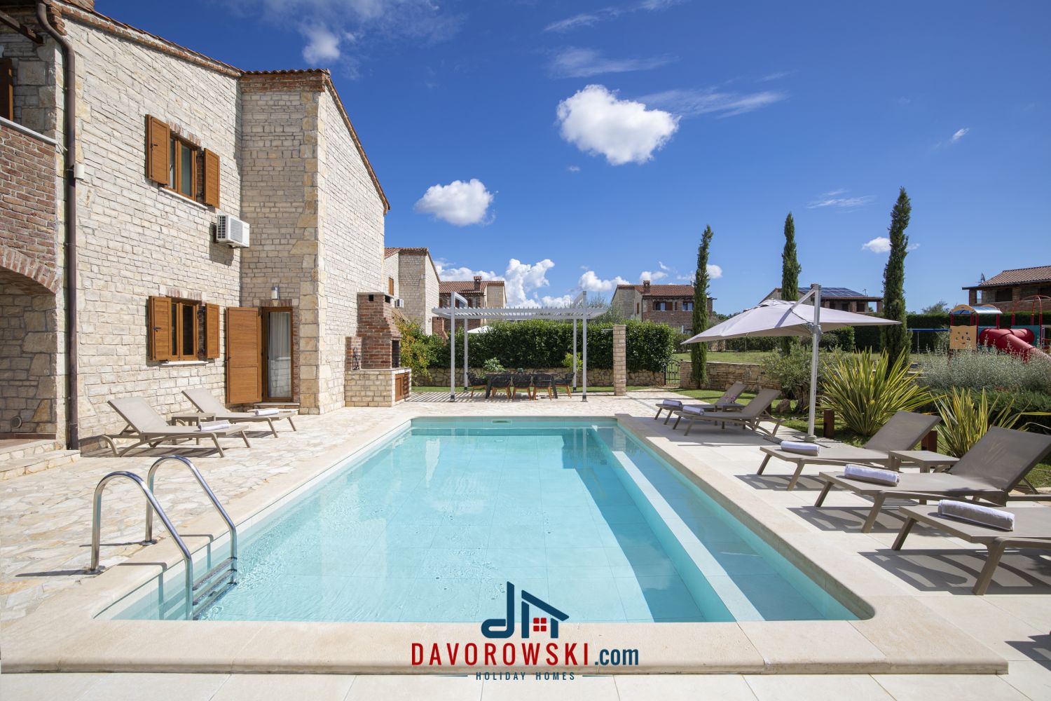 Paradise Villa Istria is a comfortable family home located in the Paradise Villas resort near Vodnjan. Located only 15 kilometers from Pula, this is a smart location for a quiet vacation. The property is air-conditioned (4 units) on both floors.